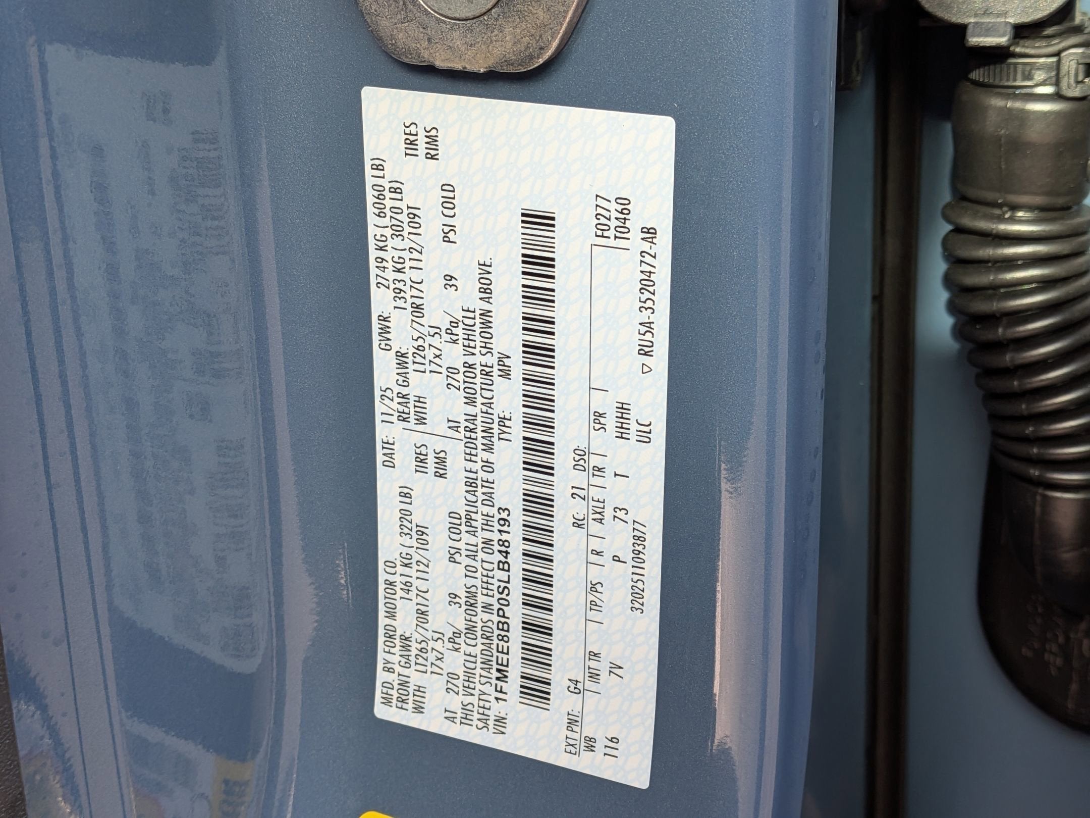 - Gross Axle Wt Rating - Front (lbs): 3270