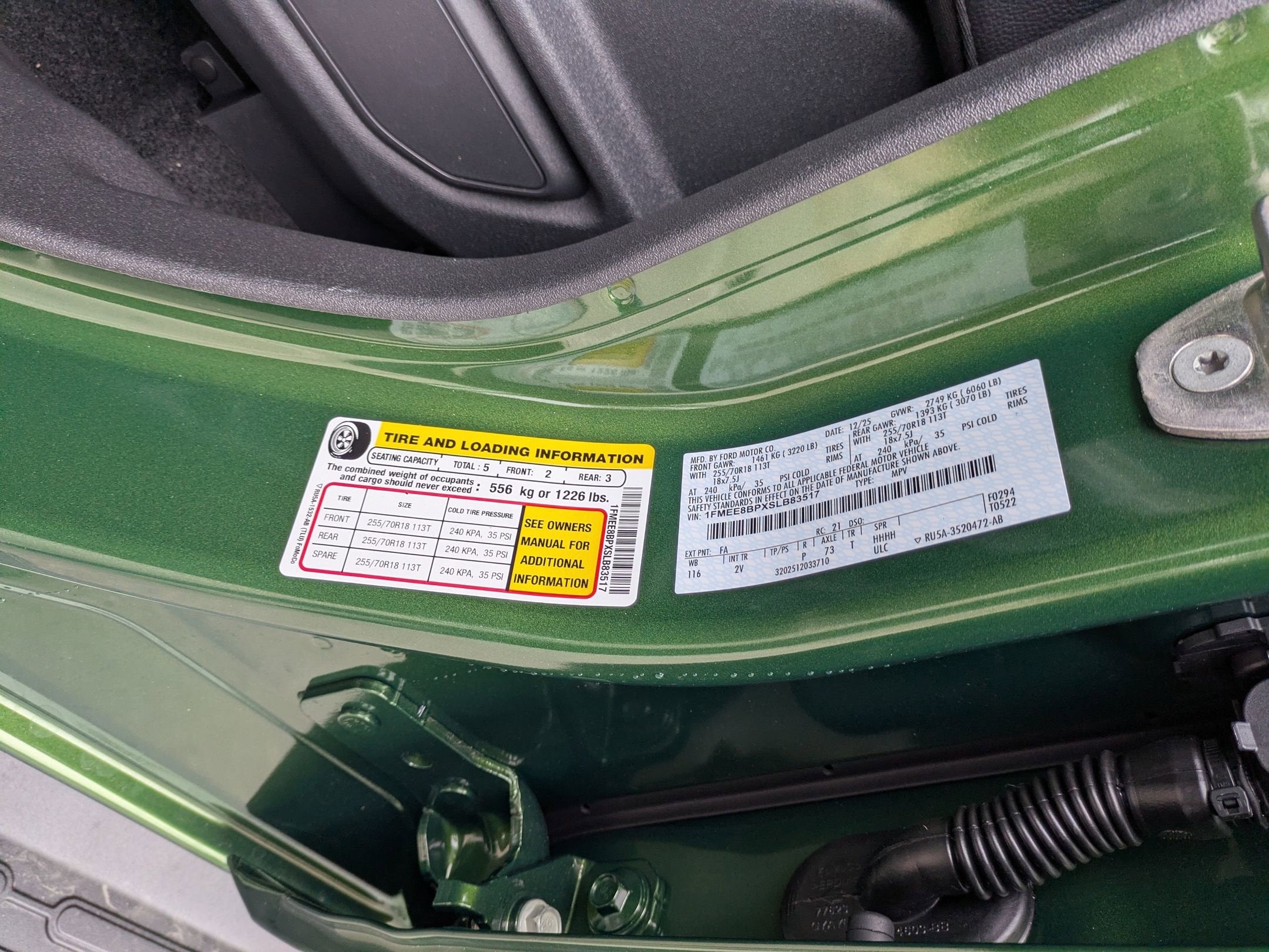 - Tires: P255/70R18 A/T -inc: full size spare tire w/TPMS