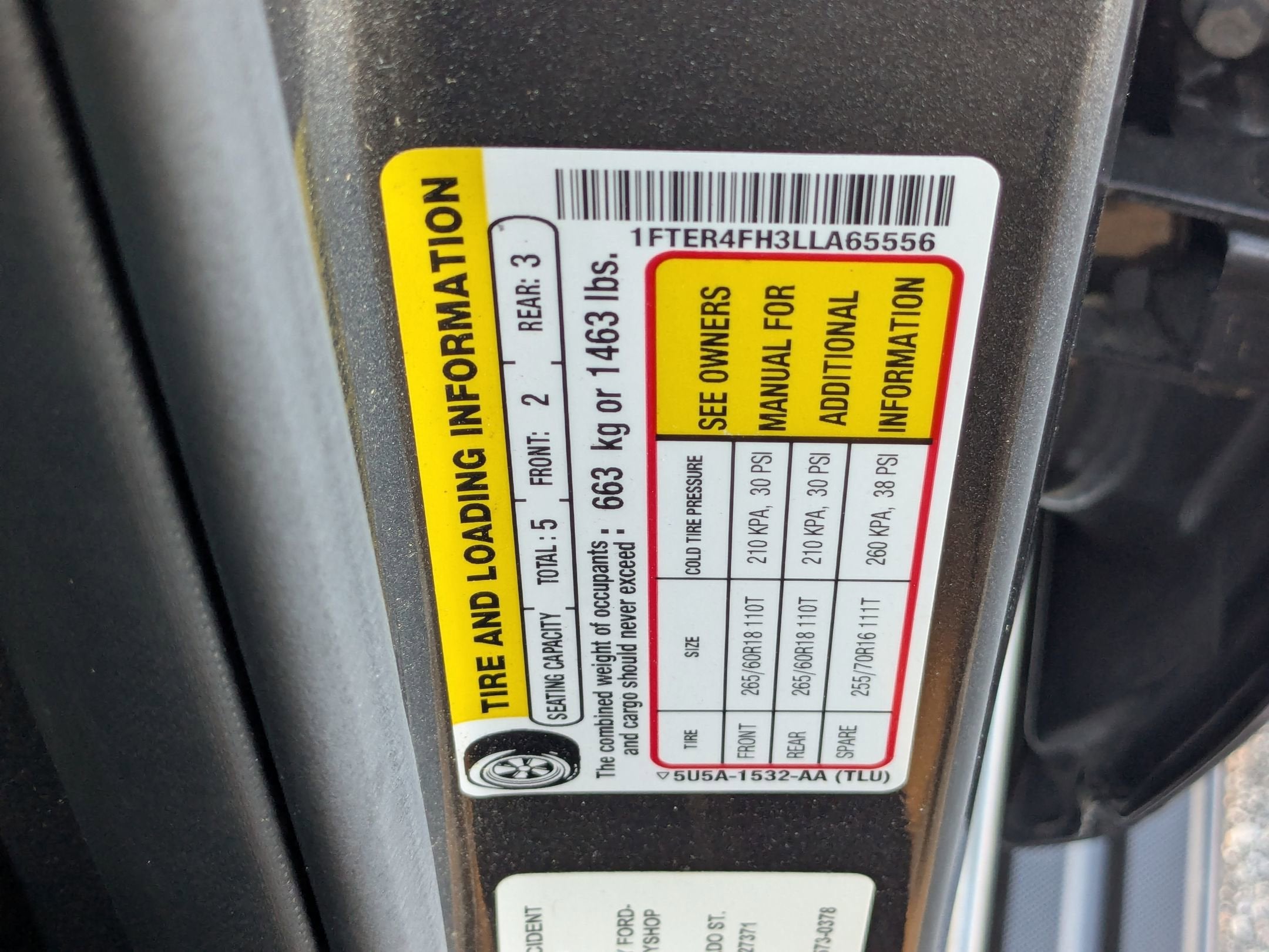 - Spare Tire Size: Full-Size